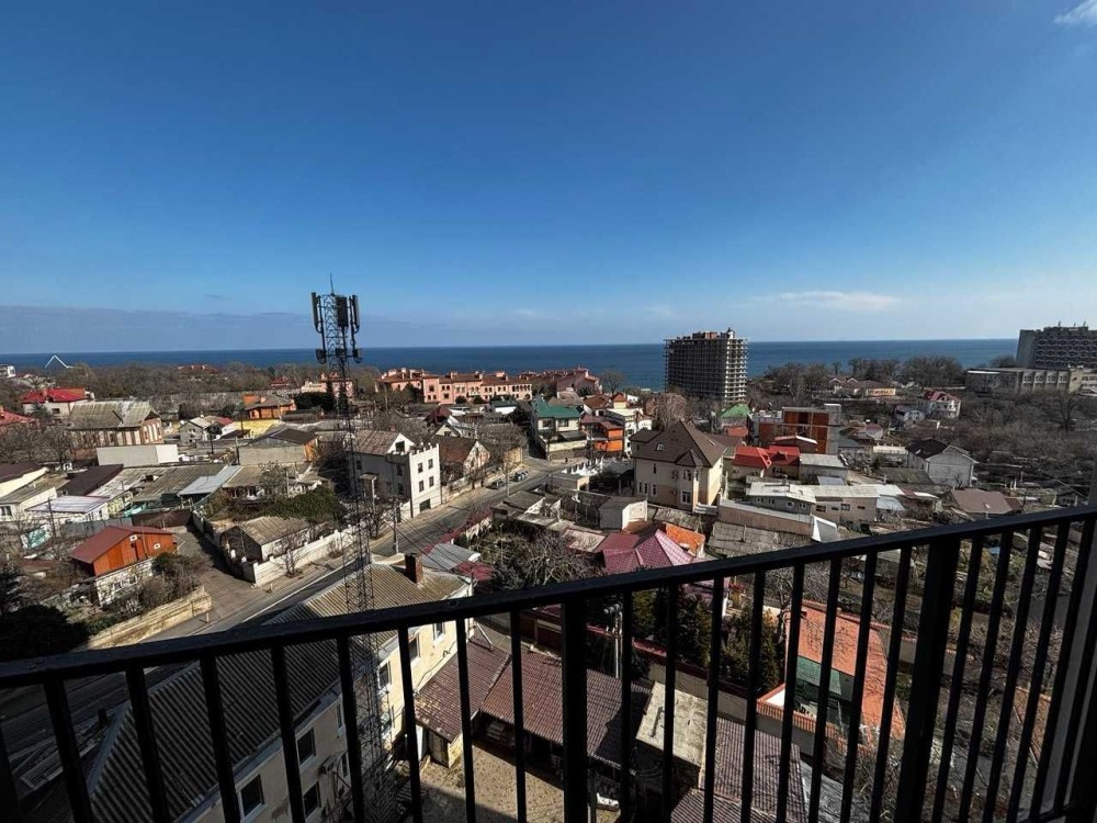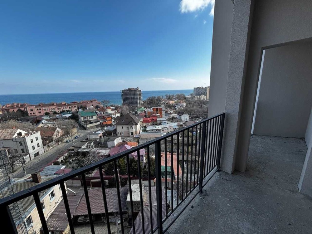 Велика відкрита лоджія на всю ширину квартири з панорамним видом моря.