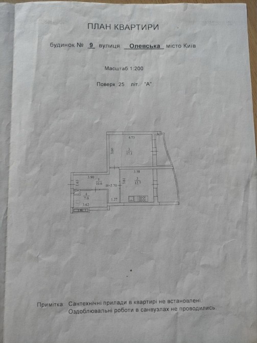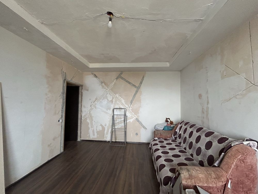 В квартирі частково зроблений ремонт: електрика, сантехніка, туалет є також новий, залишилось встановити тільки, стіни рівні, в кімнаті ламінат, в квартирі лінолеум.