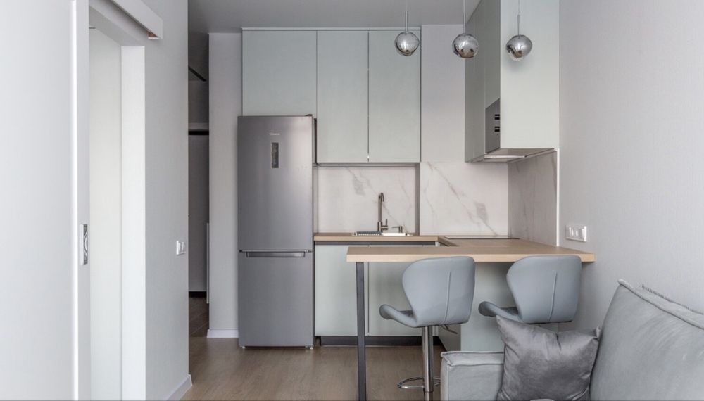 Продаж 1-к квартири вул. Зарічна 2. Найвидовіша квартира в ЖК Славутич. В квартирі зроблено дизайнерський ремонт, є вся необхідна побутова техніка: посудомийка, вбудований холодильник, сенсорна витяжка, варочна поверхня, мікрохвильовка, духовка, пральна машинка з функцією осушки, кондиціонер, телевізори, душ, ванна, інсталяція, парящя стеля, паряще ліжко, декоративна оздоблення стін-штукатурка В ЖК цілодобова охорона на камери відеоспостереження. 044 200 10 80