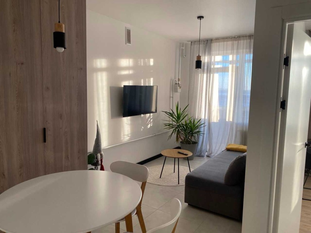 нова сучасна .квартира в новому ЖК 43 м/2 с балконом та лоджия ,є все необхідне для комфортного проживання. тепла підлога індивідуальне опалення.поруч зупінки транпорту та магазини, до метро Теремки дві зупинки . wi-fi постійний. вода теж.