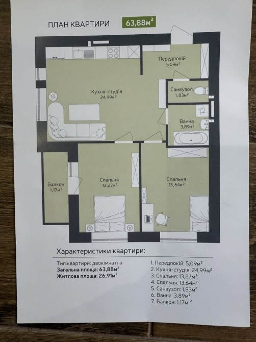 • Загальна площа 64 м2