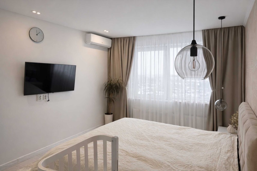Продумане планування включає простору кухню-студію з виходом на комбінований балкон (відкриту та закриту частини), затишну дорослу спальню та світлу дитячу кімнату. В оселі передбачена містка гардеробна та функціональна побутова кімната, переобладнана з другого санвузла, де компактно розміщені пральна машина, бойлер та технічні вузли резервного водопостачання. Комфортний мікроклімат створюють сучасні кондиціонери та система теплої підлоги. Продаж здійснюється у форматі «все включено»: новим власникам залишаються абсолютно всі меблі, побутова техніка та засоби комфорту, що дозволяє заїхати та жити одразу після покупки.