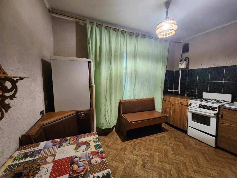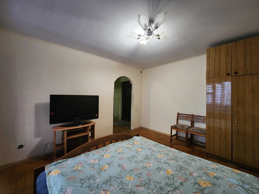 - Квартира у житловому стані, частково кукомплектована меблями та технікою: двоспальне ліжко, шафа, холодильник, телевізор, бойлер, пральна машинка.