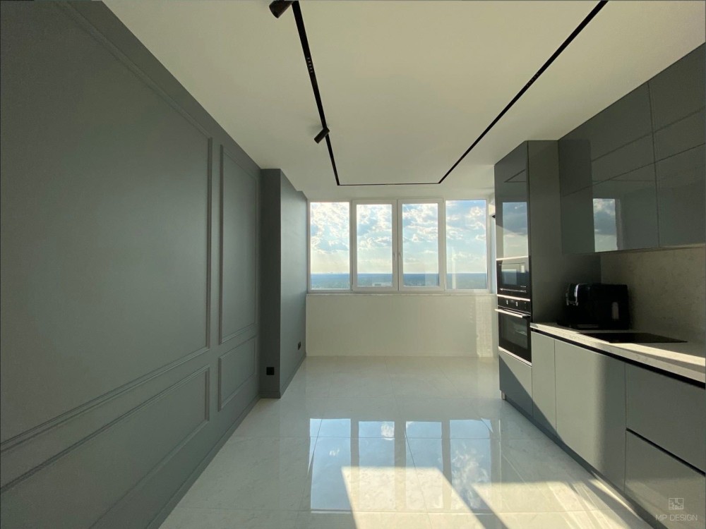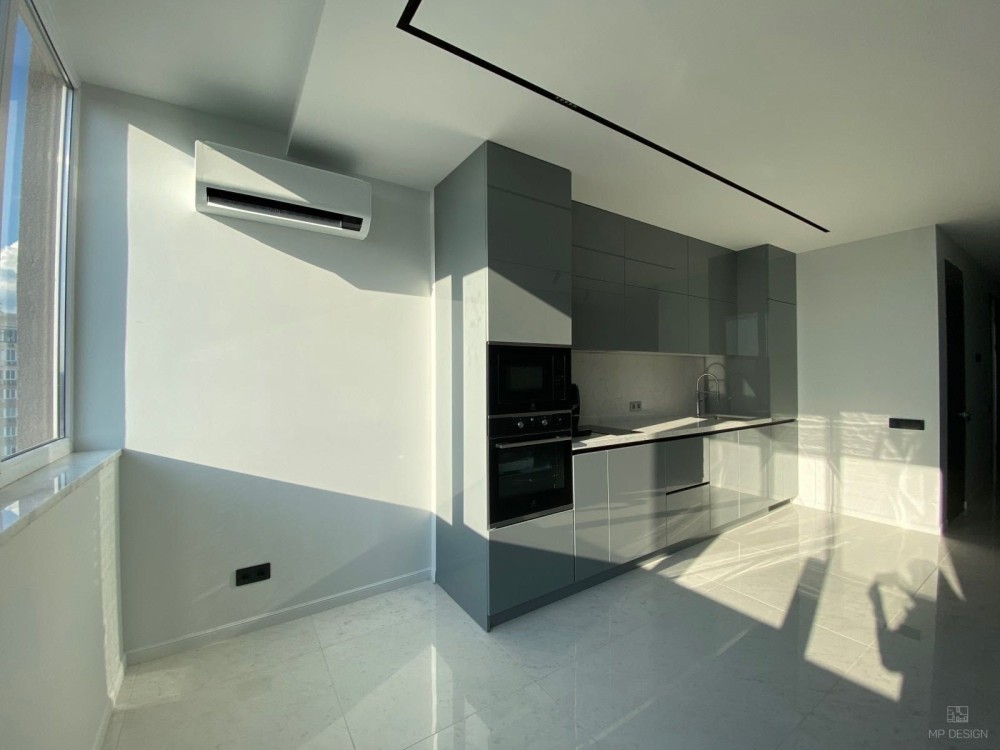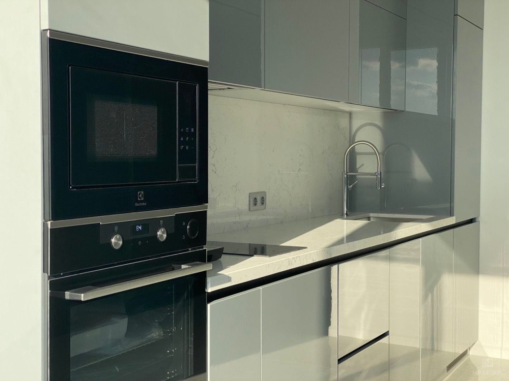 • Простора кухня з вбудованою технікою та сучасним глянцевим фасадом