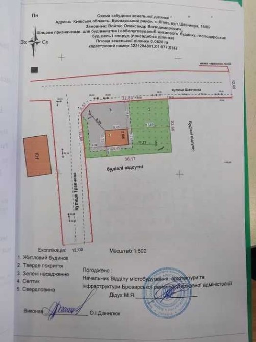 Будинок розташований на земельній ділянці площею 8,2 соток з кадастровим номером 3221284801:01:077:0147, за адресою: Київська обл., Броварський р-н, с. Літки, вул. Шевченка, 168-Б
