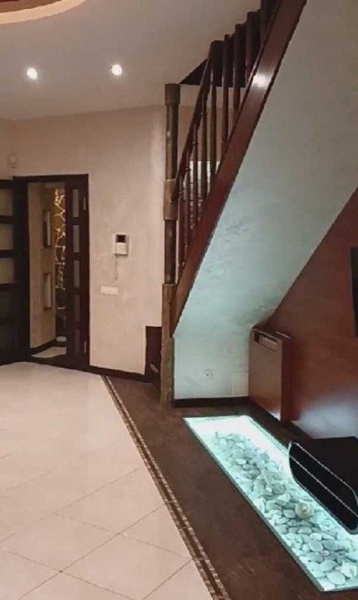 ​Перший поверх, санвузол та кухня-вітальня: Простора зона open-space з діючим каміном. Кухня обладнана стільницею з натурального каменю та сучасною технікою.
