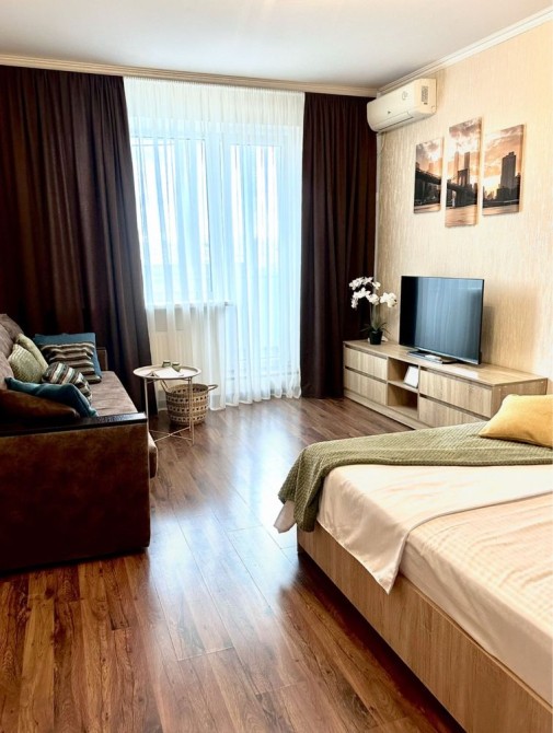 Уютная квартира в новостройке после ремонта. Находится на достаточном удалении от проезжей части, что позволит Вам отдохнуть в тихой спокойной обстановке вдали от шума. Здесь Вы найдете все для комфортного пребывания: телевизор с плоским экраном, кондиционер, оборудованная кухня с микроволновой печью и стиральной машиной, фен и утюг. Для Вашего удобства также есть гардеробная комната с гладильной доской. В шаговой доступности три супермаркета, рынок, несколько салонов красоты, отделение банка, каскад магазинов. Отличная транспортная развязка, три минуты езды до ЖД и автовокзала. Поселение лиц старше 21 года при наличии документов и залога. Для шумных мероприятий не сдается!Звоните или пишите на вайбер ))) 09******99 Ирина. Есть и др варианты