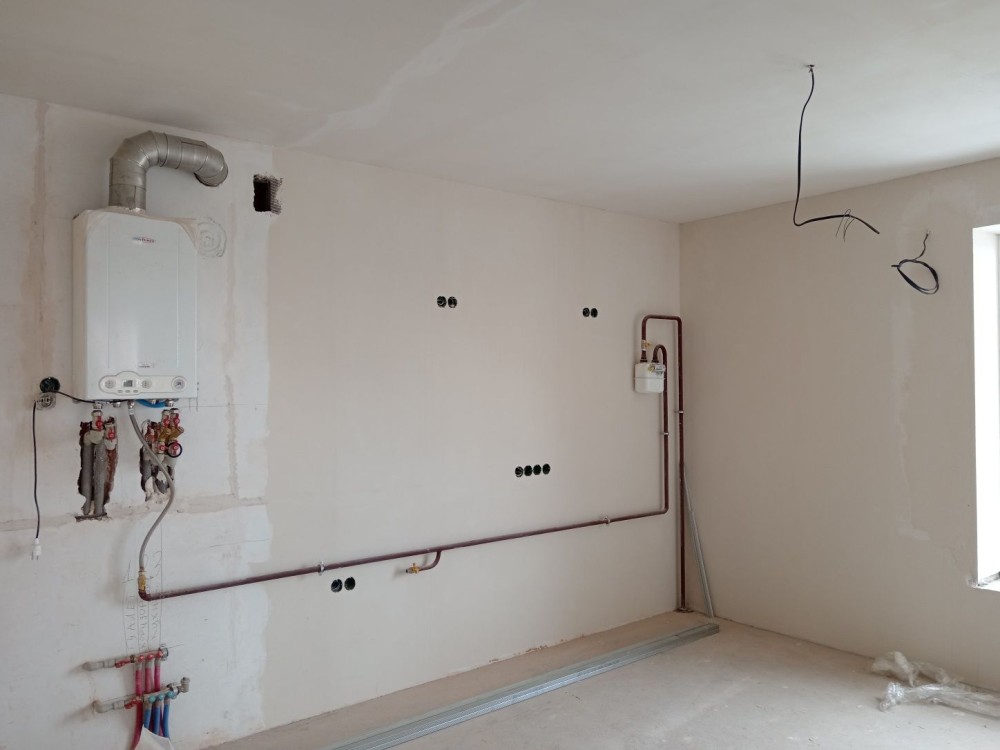 м. Гостомель, вул. Ювілейна 4ж, на 3поверсі, площа 50м2. Квартира 2к,з окремими кімнатами та кухня-вітальня, в квартирі зроблено всі чорнові роботи,всі виводи під сантехніку, розведена проводка, підігрів полу, встановлений газовий котел, опалення газове.