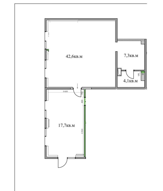 -Висота стелі H=3,50 метрів.