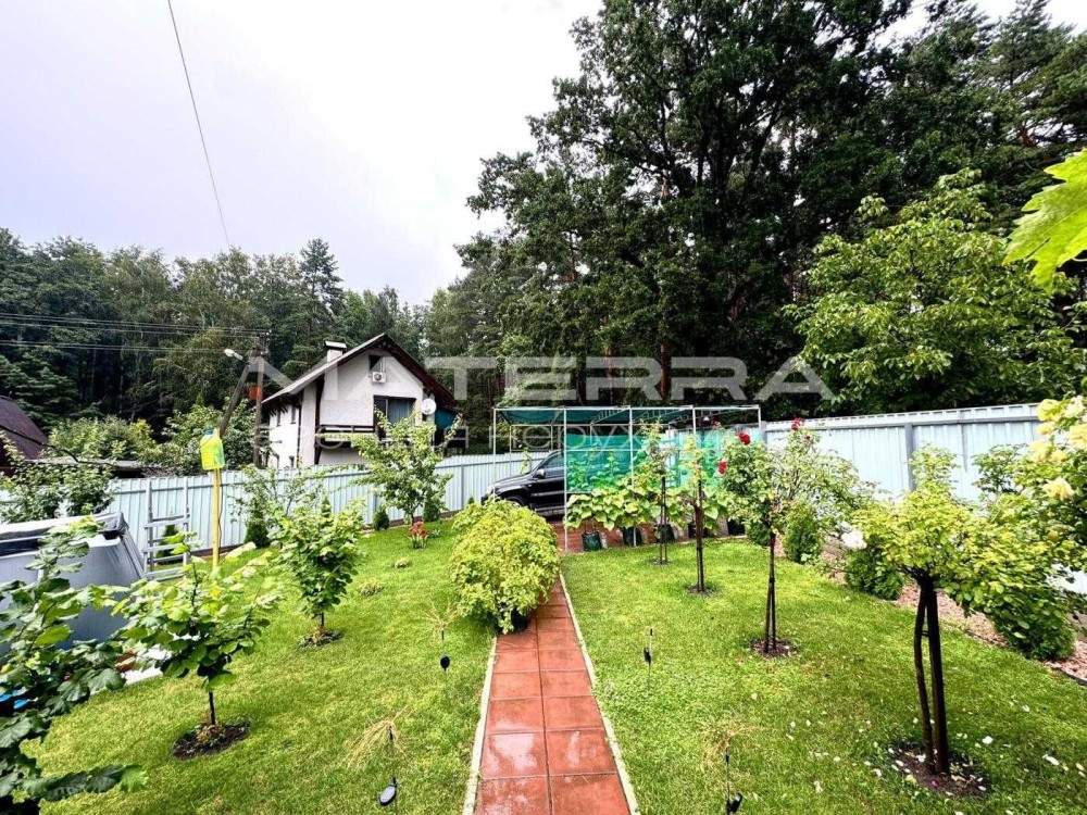 Пропонується до продажу затишна дача в чудовому природному місці — поруч ліс та озеро, тиха й зелена ділянка з доглянутим садом.