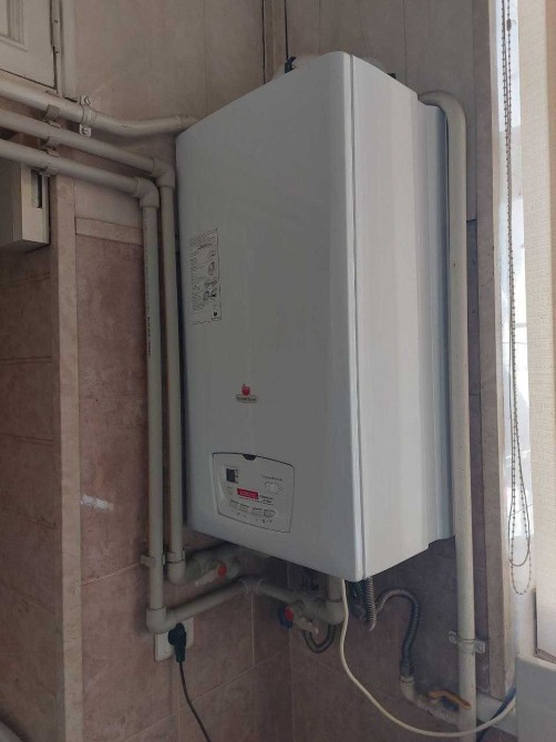 Отопление двухконтурным газовым котлом. Высота потолков 3.5 м.