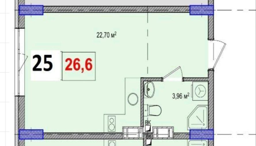 • Загальна площа 26.6 м2