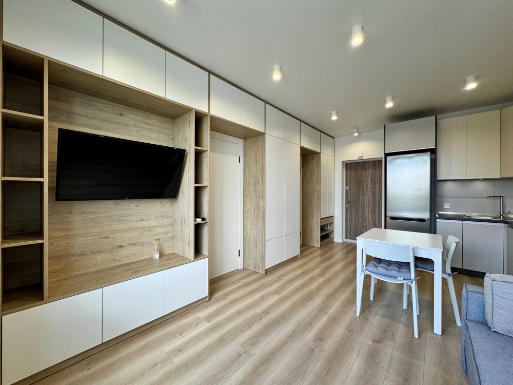 Планування: невеликий передпокій, велика ванна кімната, простора кухня-вітальня, спальня.