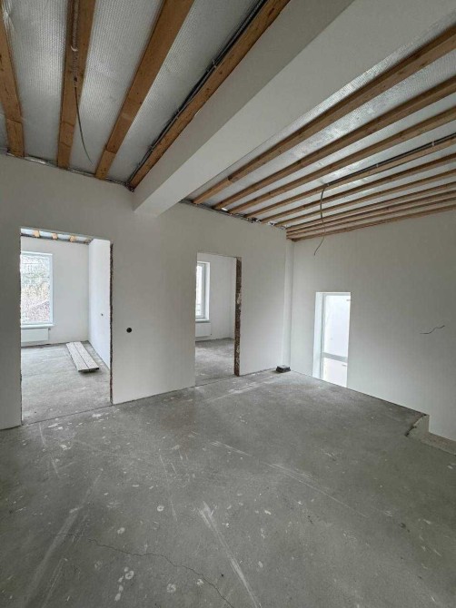 2-й поверх: три окремі кімнати з виходом на балкон, простора гардеробна з вікном (за потреби можна облаштувати під ще одну кімнату, просторий санвузол.