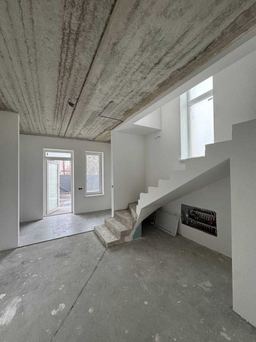 1-й поверх містить простору кухню-вітальню з виходом на терасу, окремий вхід в гараж на атомотичних воротах, гардеробну, санвузол, тех. приміщення.