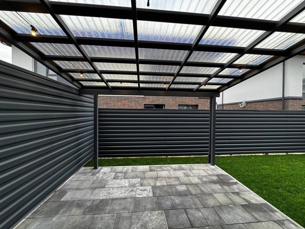Окремий заїзд, облаштована крита тераса для літніх вечорів.