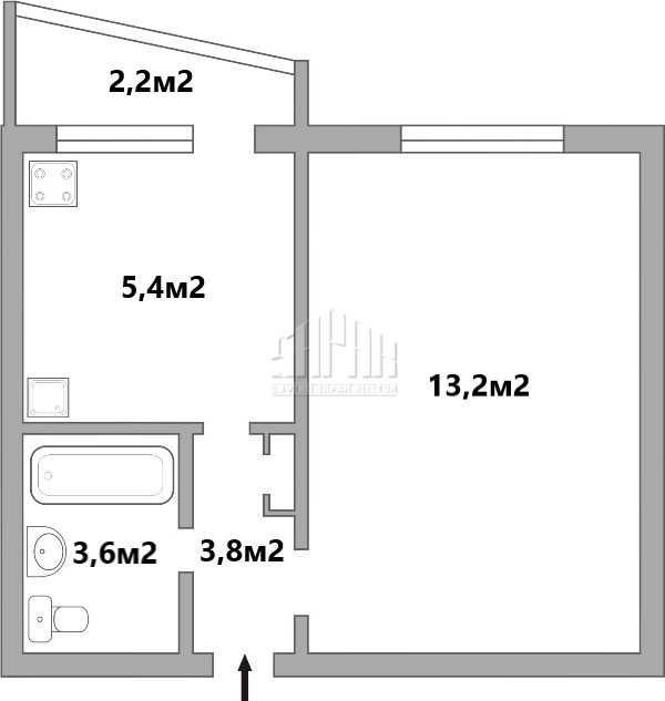 • Площа кухні 5.4 м2