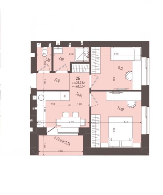 • Загальна площа 42 м2