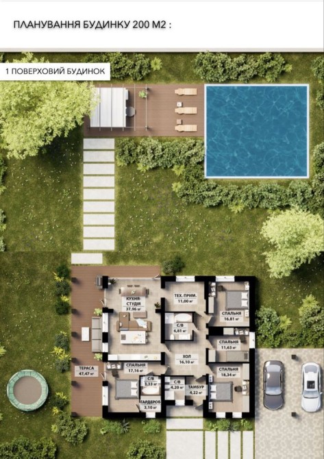 • Загальна площа 200 м2