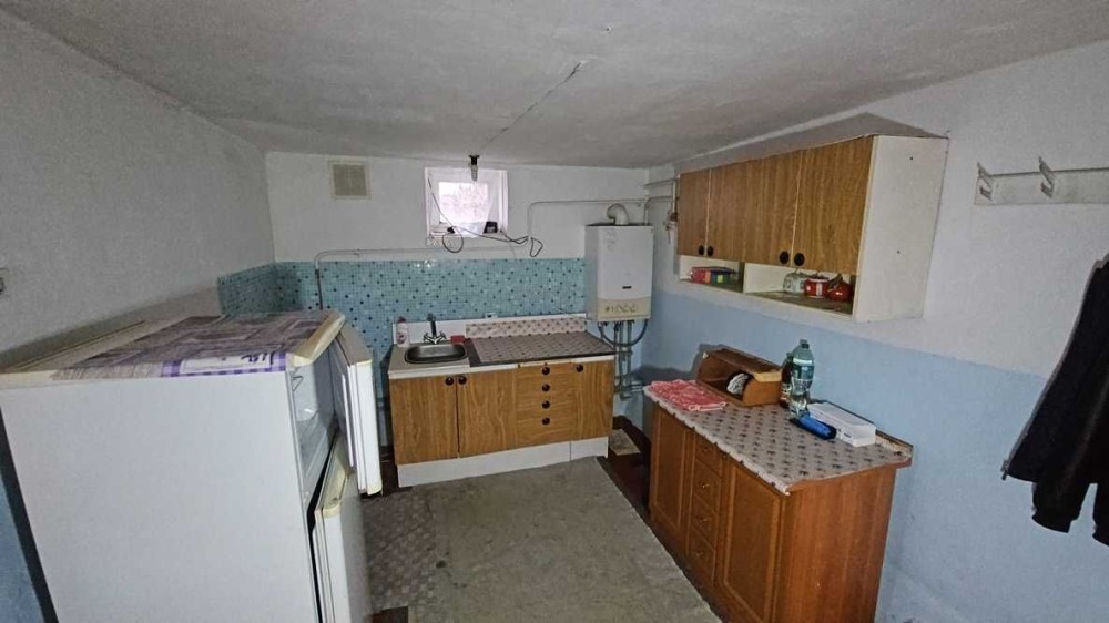 В будинку розміщені: кухня ( газова плита, мийка, газовий настінний двоконтурний котел, холодильник), санвузол (душова кабіна, унітаз, пральна машина, рукомийник), дві кімнати (стіни - шпалери, підлога - дерево, стеля - фарбування).