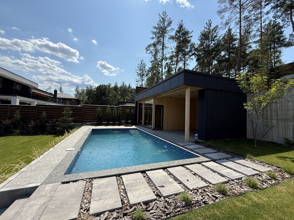 Ділянка 7,8 соток з басейном та окремою спа зоною. Територія лісу, ялинки та сосни на ділянці створюють окрему казкову атмосферу!