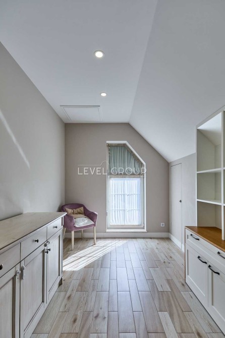 Майстер-спальня має власну гардеробну та ванну кімнату з виходом на балкон, а також окремий доступ до дитячої кімнати.