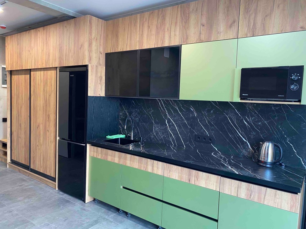 • Дизайнерская кухня с встроенным холодильником Miele, микроволновка