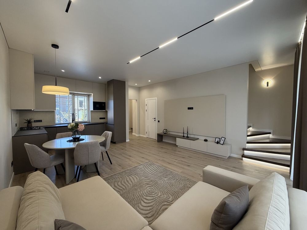 Продається стильний дуплекс з новим дизайнерським ремонтом у сучасному мінімалістичному стилі.
