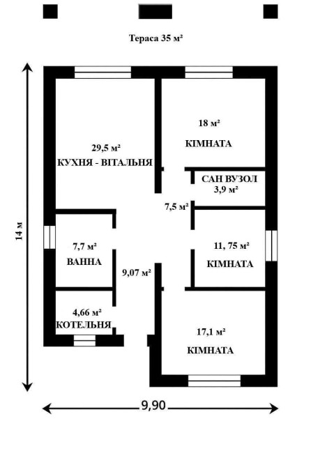 велика тераса 35м2 на південну сторону. Додатковий простір і комфорт для відпочинку.