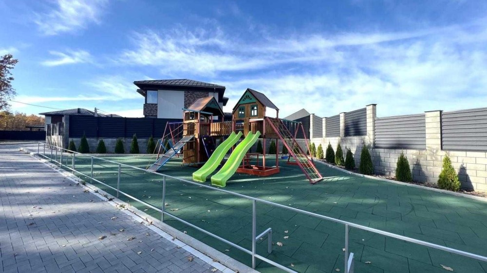 На ділянці автополив, газон та зливова система.