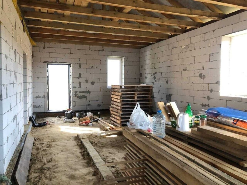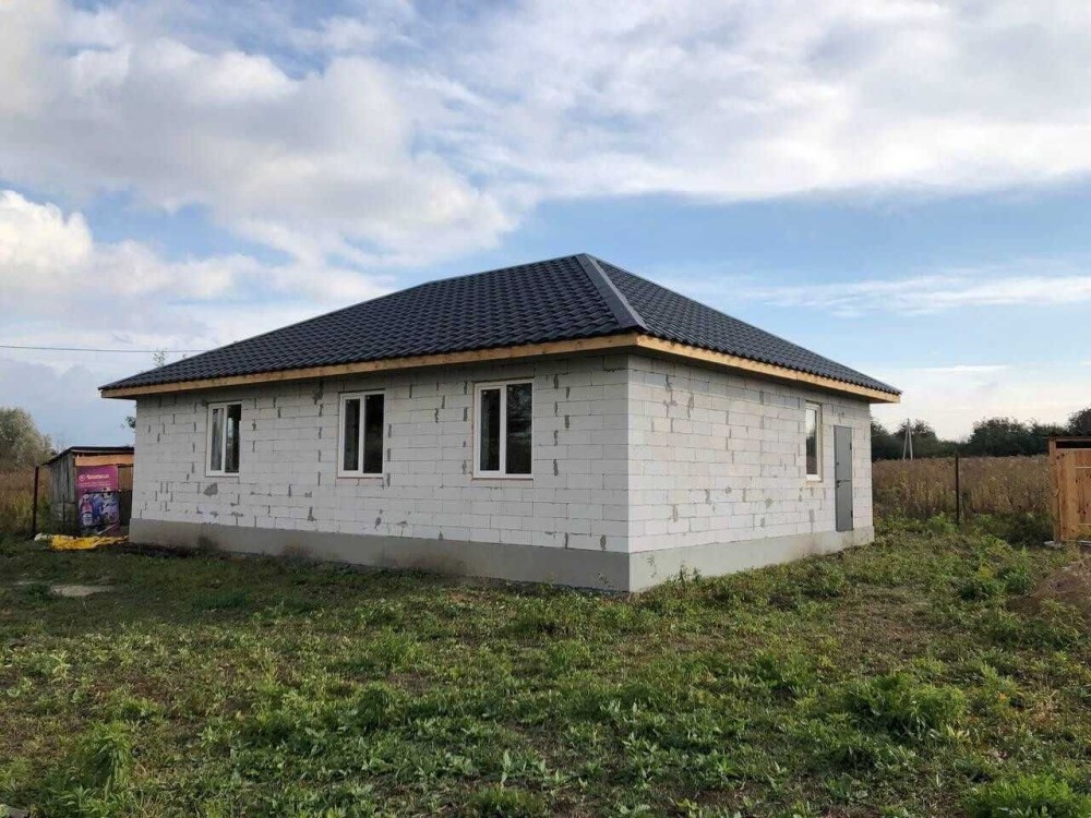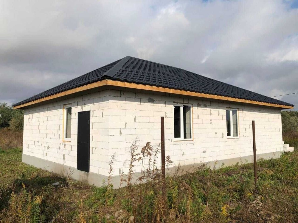 Стіни - піноблок, дах - металочерепиця.