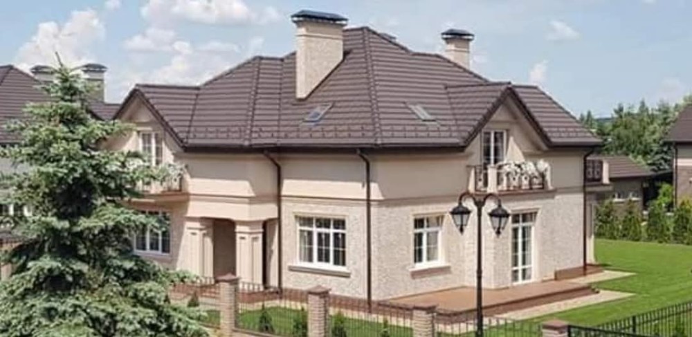 4 спальні, вітальня з панорамними вікнами до полу з виходом на терасу, камін, гараж на 2 авто, 4 балкони, покрівля з черепиці з утепленням.