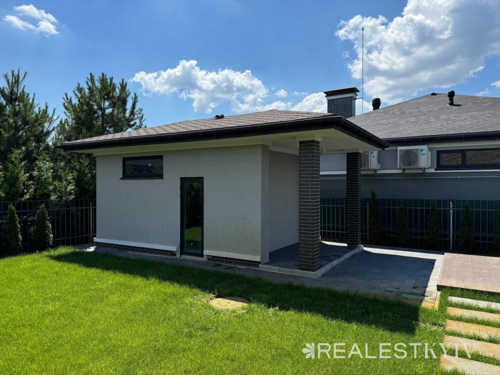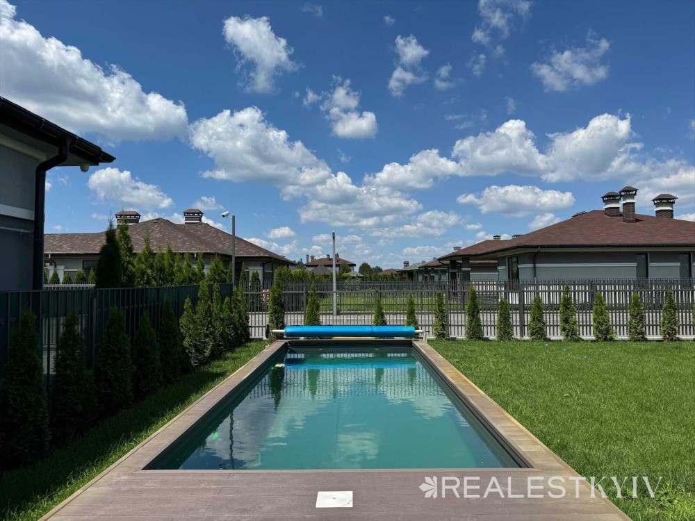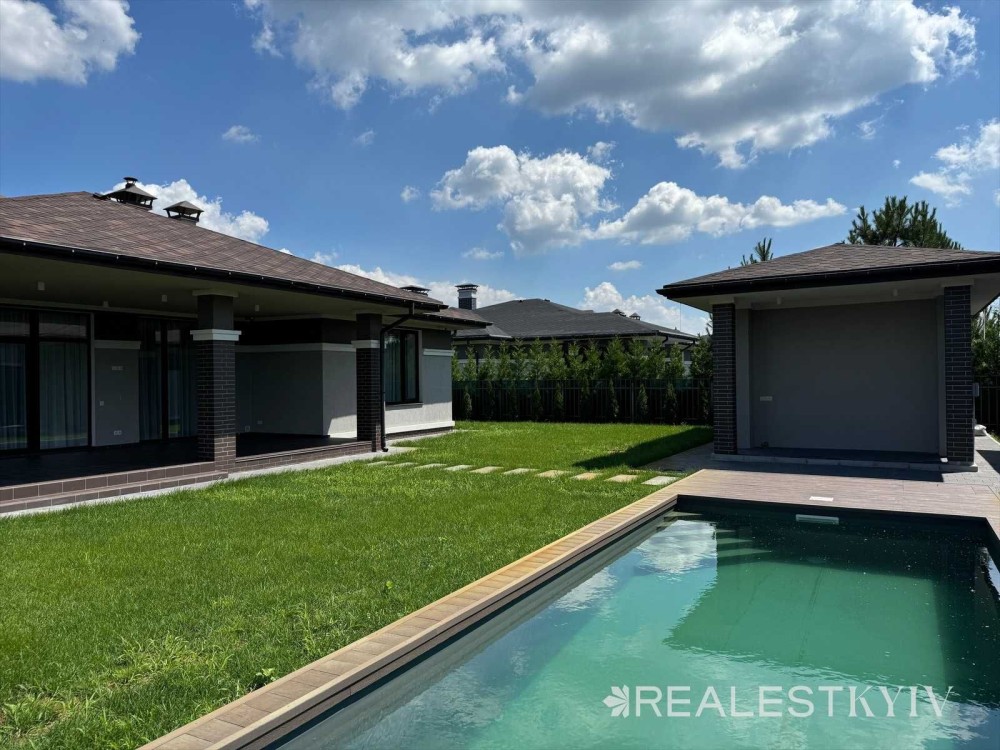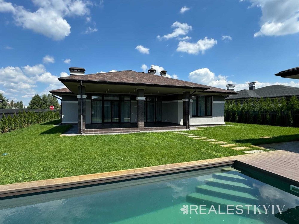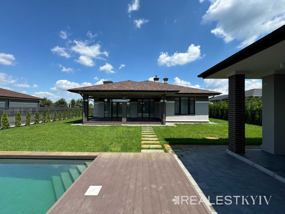 Продається новий одноповерховий будинок з дизайнерським ремонтом та басейном в закритому котеджному містечку "Золоче". У будинку є газовий котел, камін, виконано якісний сучасний ремонт, встановлено побутову техніку Bosch. На ділянці виконано озеленення, облаштовано басейн, навіс на 2 авто.