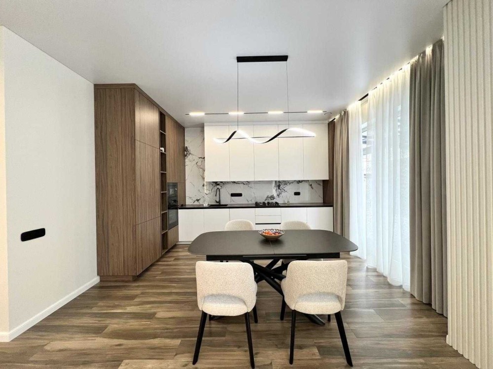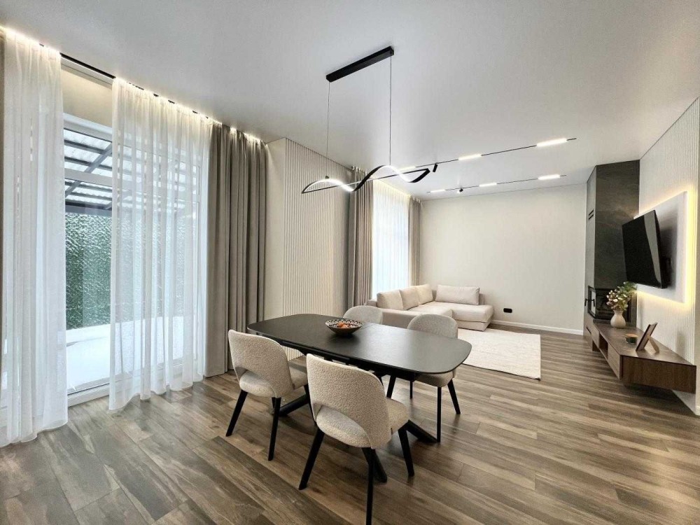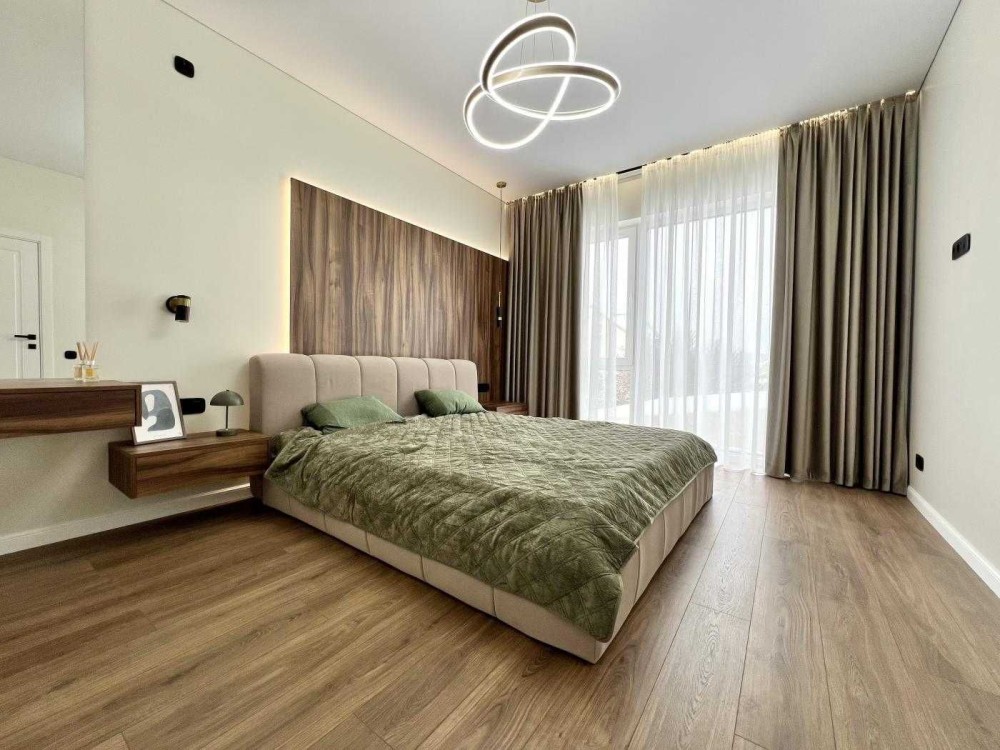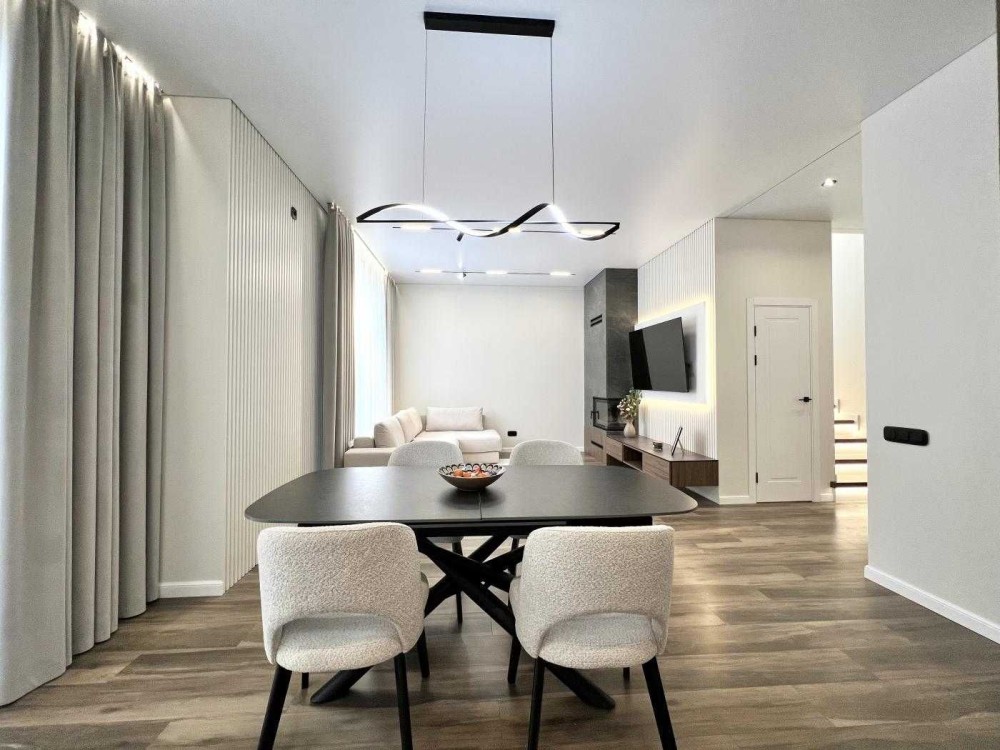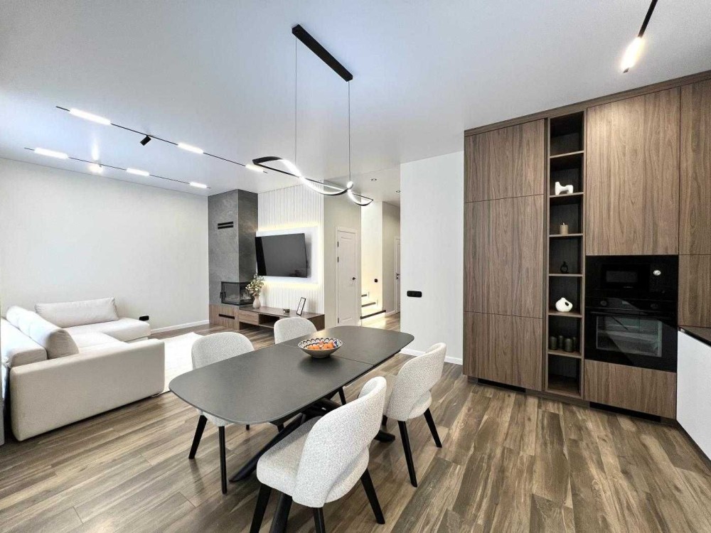 • Планування: кухня-вітальня з каміном, 4 окремі кімнати (одна з гардеробною), 2 санвузли, комора.