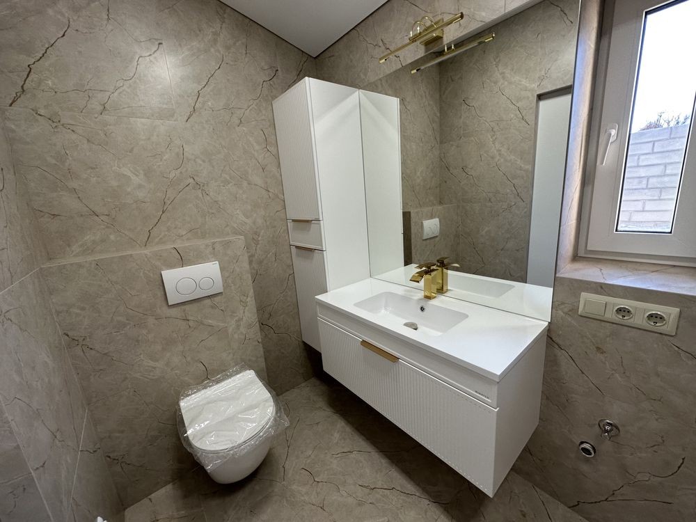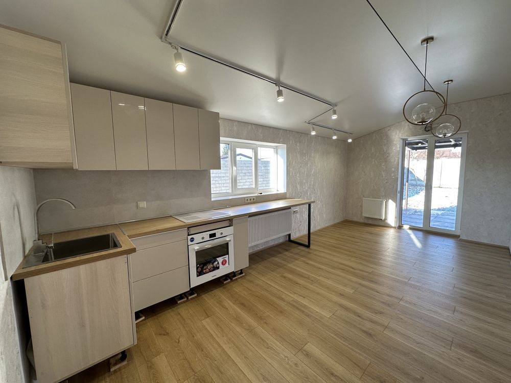 Новий будинок (7/10 ) в смт Підгородне на вулиці новобудов , збудований із газобетону 400 мм , фундамент утепленний екструдерним пінополістиролом . Ділянка землі приватизована , правильної форми 10/34м . Планування : велика кухня - вітальня з виходом на терасу та 3 спальні . Одна спальня також з виходом на терасу , тераса - 17м . Вікна REHAU , автономне електроопалення , тепла підлога в санвузлі та прихожій , натяжна стеля . Дах з металочерепиці утепленний мінеральною ватою та звукоізольована Terafoam . Є власна скважина з насосною станцією глибиною 17 м , та зливна яма з підведеними комунікаціями . Заведено 3 фази , 380 В , 16.1 кВт .