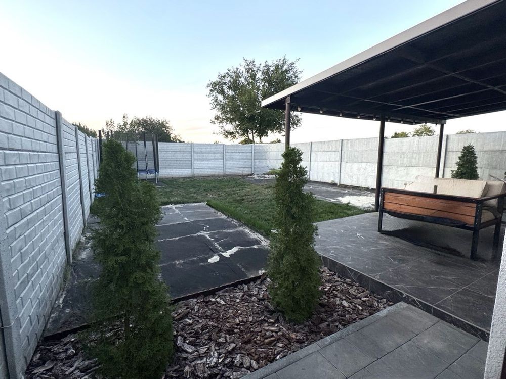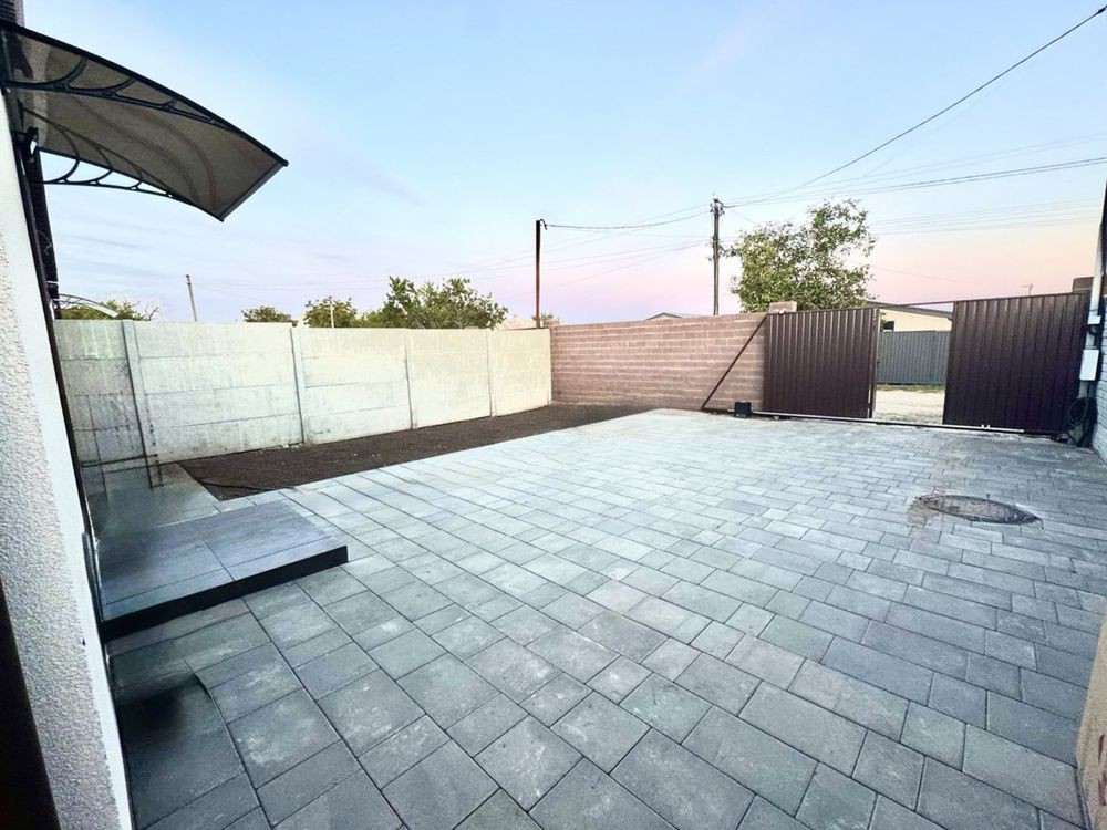Благоустроєне подвірʼя , автоматичні ворота , тротуарна плитка , виводи для системи поливу , можливість зарядки автомобіля .