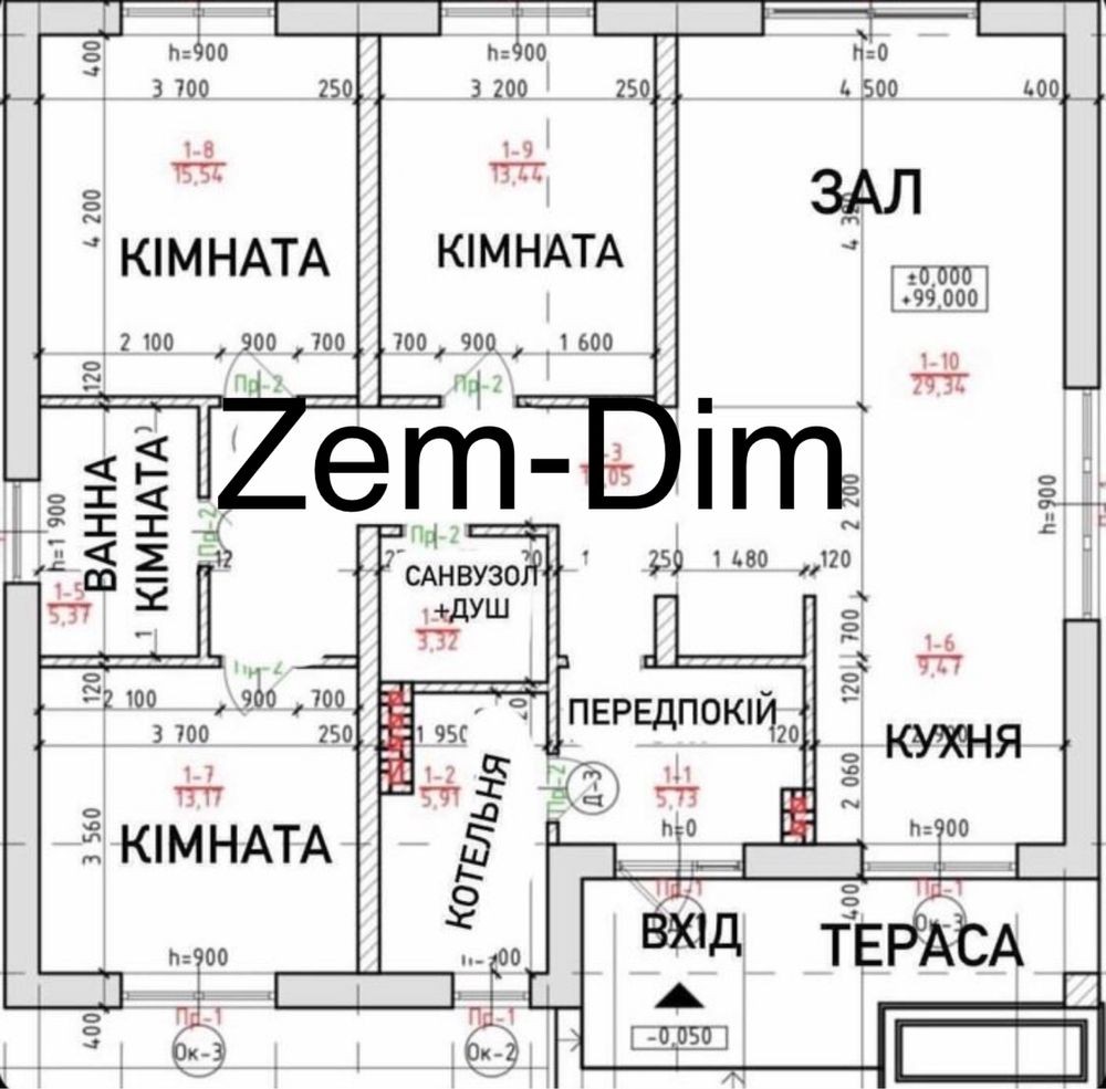 - Кількість кімнат - 3 спальні, 2 санвузли, котельня, кухня+вітальня;