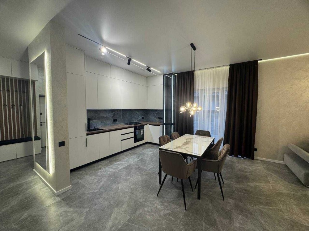 Для додаткового комфорту в коридорі, кухні та санвузлах встановлена тепла підлога. Кухня та ванна кімната вже обладнані меблями.