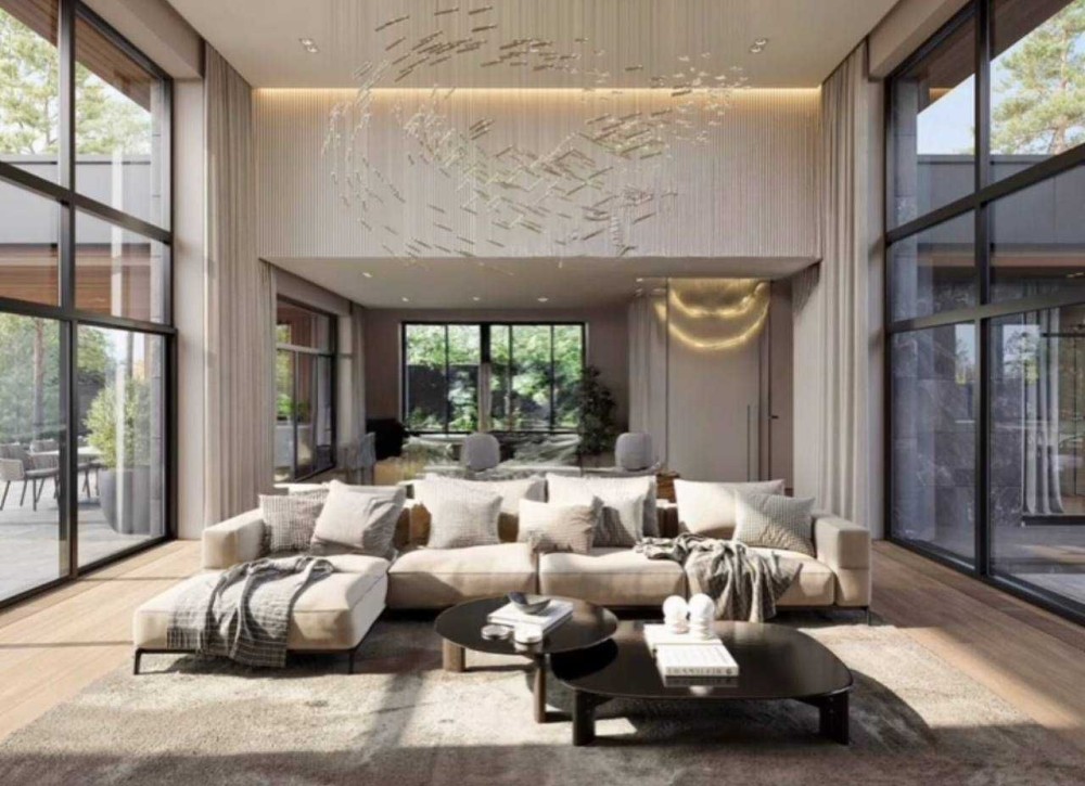 Величезна вітальня з висотою стелі 5,5 метра