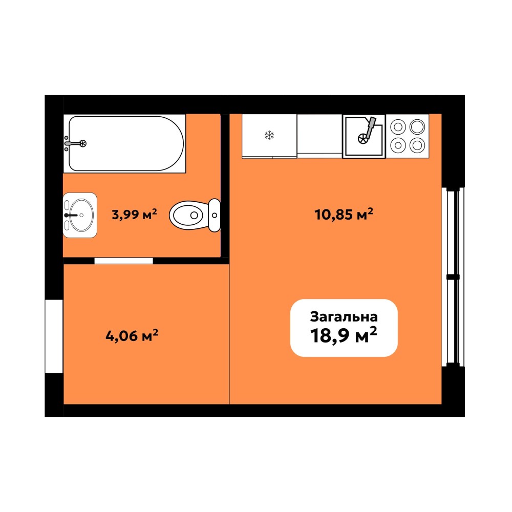 • Загальна площа 18.9 м2