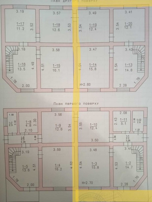 - на 1-м этаже 2 комнаты, кухня, санузел, коридор;