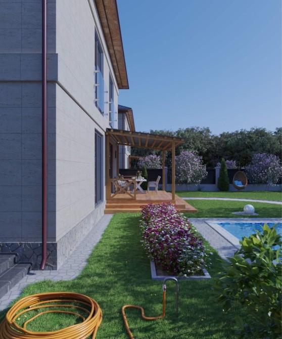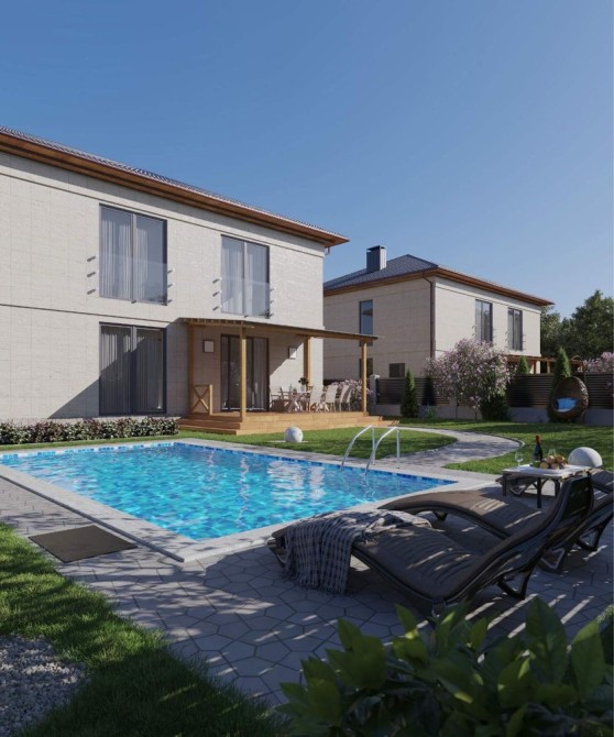 • Комфорт Кондиціонер, Ванна, Душова кабіна, Тераса, Сигналізація, Відеоспостереження, Охоронювана територія, Гараж, Автоматичні ворота, Допоміжні приміщення, Басейн