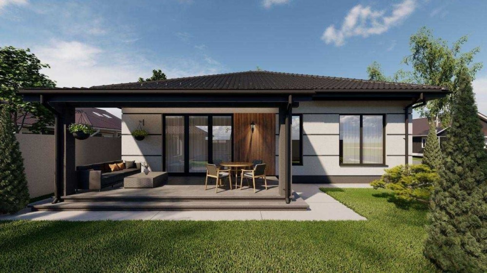 Крыша: цементно-песчаная черепица цвет Антрацит.