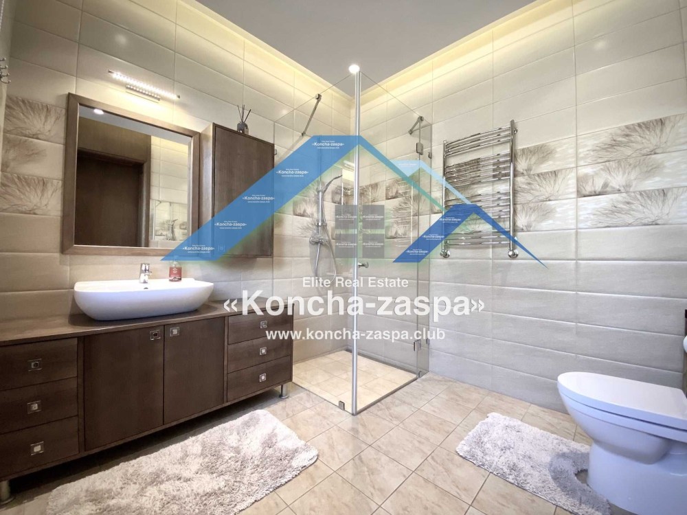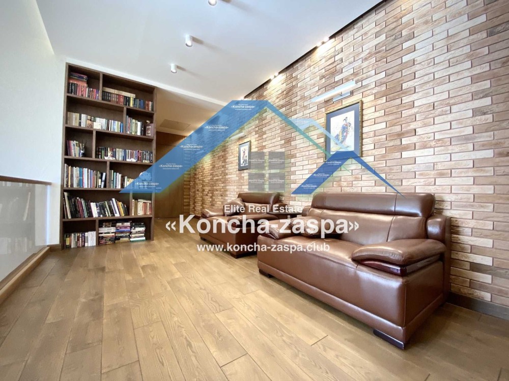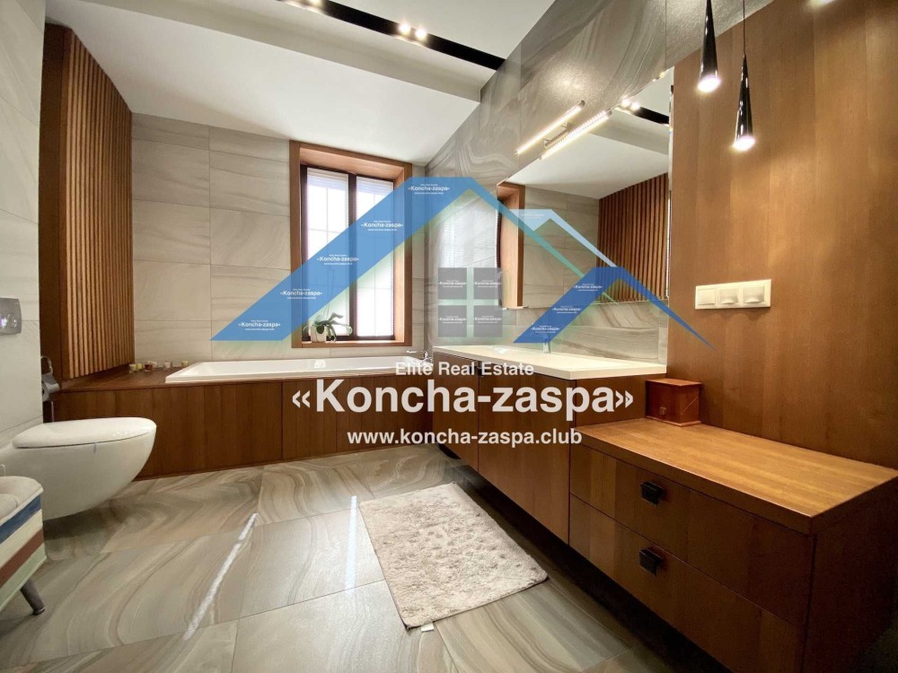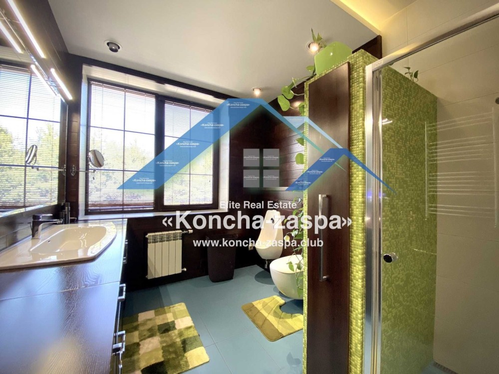 17 км. от Киева по Новообуховской трассе. Коттеджный городок удален от дороги и находится в лесу. Своя инфраструктура. Военизированная охрана территории. Общая площадь дома 500 кв. м. На территории участка (18 сот) находятся бассейн, сауна, барбекю, дом для охраны. Современный стильный проект. Приятны разнообразие и новизна, которую внес фьюжн, гармония, смелость, великолепный вкус и чувство меры. Постройка включает в себя гостиную с камином, террасы, несколько спален, столовую, помещения для различного досуга, винный погреб. Удачно подобранное освещение меняет настроение, создает нужную обстановку, значительно изменяет внутренний вид дома, превращаясь в декорацию. Роскошная сантехника, современная стильная мебель, техника. Дизельный генератор на 12 киловатт, 2 автономные скважины, центральное водоснабжение и солнечные гелиосистемы. Посажен молодой плодоносящий сад.