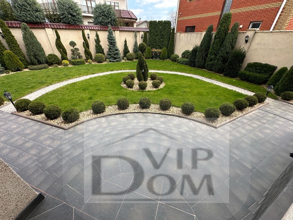 Ландшафт: газон, геотекстиль, капельный полив.