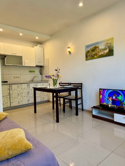 Код: 2249. (В летние месяцы цена немного повышается). Двухкомнатный дом в закрытом кооперативе на ул. Костанди. Евроремонт, общая площадь 100 кв. м., участок 4 сотки. Планировка: гостиная, спальня, большая кухня.В доме есть вся необходимая мебель и бытовая техника: холодильник, посудомоечная машина, варочная панель, утюг, электрочайник, плита, стиральная машина, пылесос, духовой шкаф, микроволновая печь, скоростной Wi-Fi интернет, телевизор, индивидуальное газовое отопление. Автономность при блэкауте: работает интернет, подключено резервное питание, работает отопление, работает водопоснабжение. Очень тихое место и приятные соседи, к морю пешком 10 минут. Своя территория с мангалом, беседкой, и два гостевых дома. В основном доме везде установлены теплые полы. Возможно проживание с животными. Аренда от 6-ти месяцев и более. Стоимость может варьироваться в зависимости от срока аренды. Перед просмотром уточните наличие и важные для вас детали по VIBER, WHATSAPP или TELEGRAM, указав «КОД» из объявления. КОМИССИЯ ЗА УСЛУГИ РИЭЛТОРА - 50% от месячной аренды (разовая оплата при оформлении договора). Пояснения: Сдается с 1 марта. В летние месяцы цена немного повышается. Костанди — это киевский район
