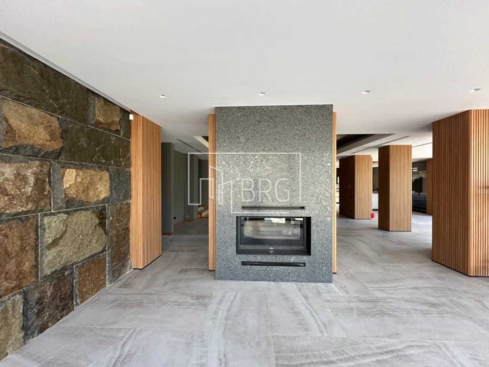 Описание: 1-й этаж: холл, гостиная с камином, зоной столовой, кухни и выходом на террасу, кабинет, спальня с с/у, гостевой с/у