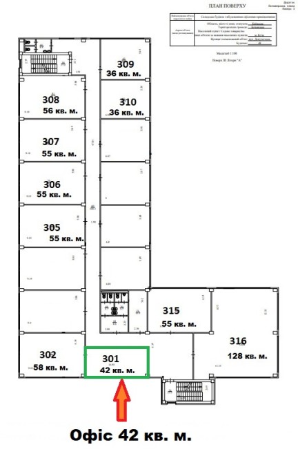 Площа 42 м2, 3 поверх,