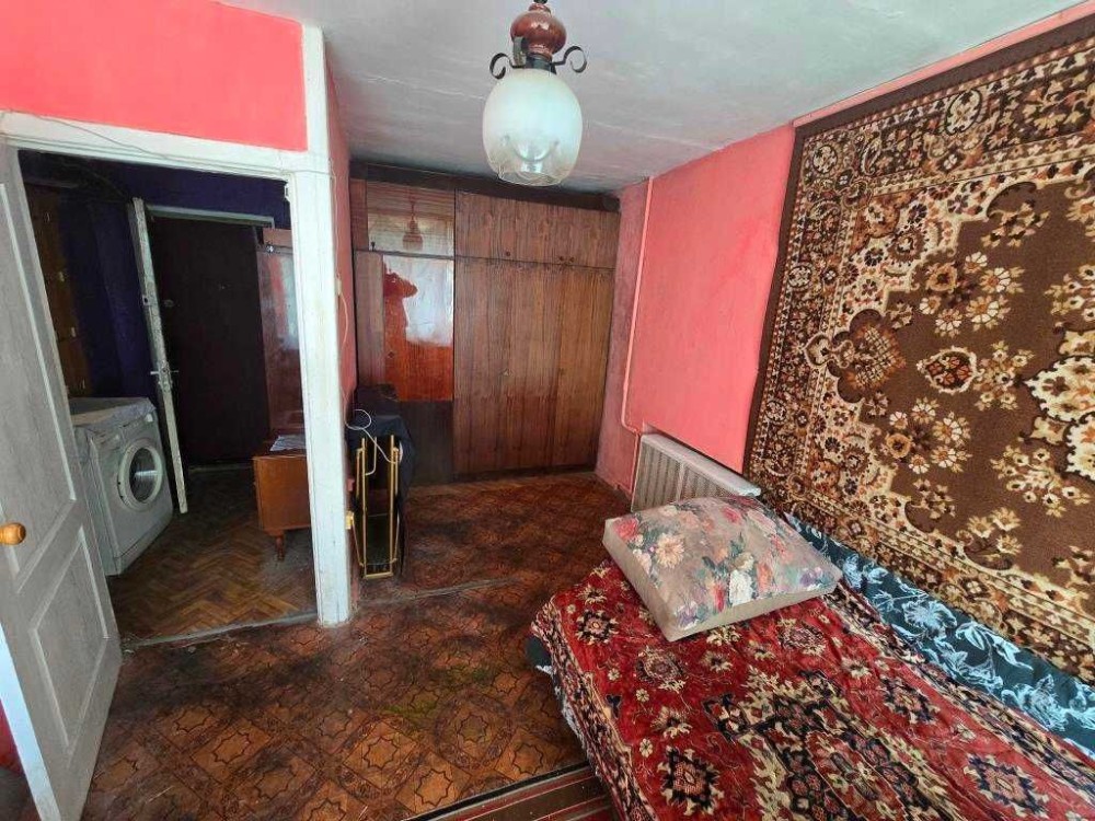Настоящий «бабушкин шик». Без посторонних запахов, зато с аурой стабильности. Есть всё для жизни: огромная двуспальная кровать (для царского сна), шкаф, стиралка и газовая плита (выживет при любых раскладах).