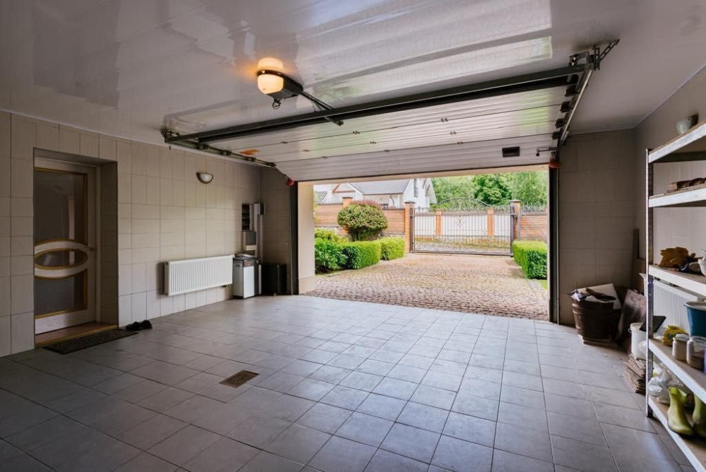В доме имеется большой гараж в котором ворота открываются автоматически с пульта.